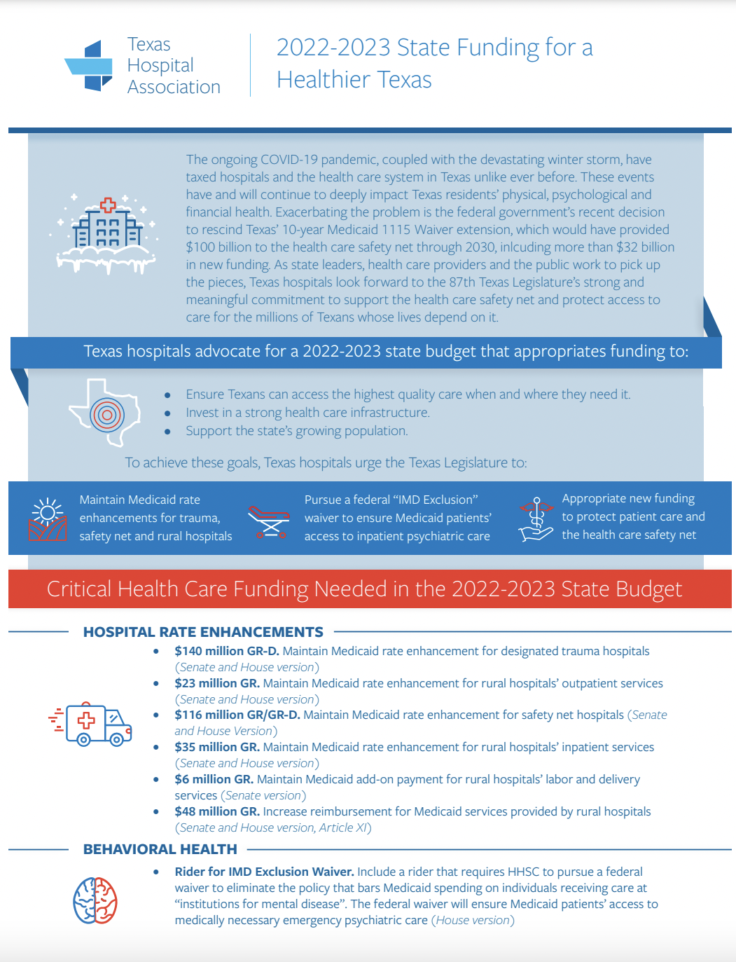 The following are white papers and explainers I’ve written to educate lawmakers, regulatory bodies, and Texas hospital leaders on a variety of health care policies. I collaborated with design experts to visually communicate key messages.